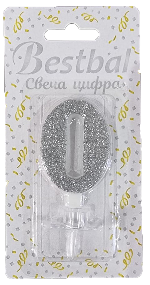 Свеча цифра "0" глиттер серебро Silver