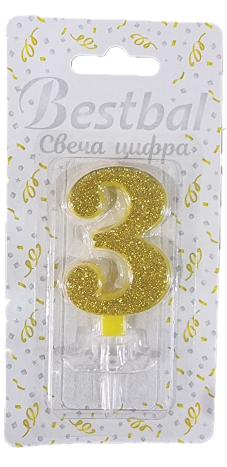 Свеча цифра "3" глиттер золото Gold