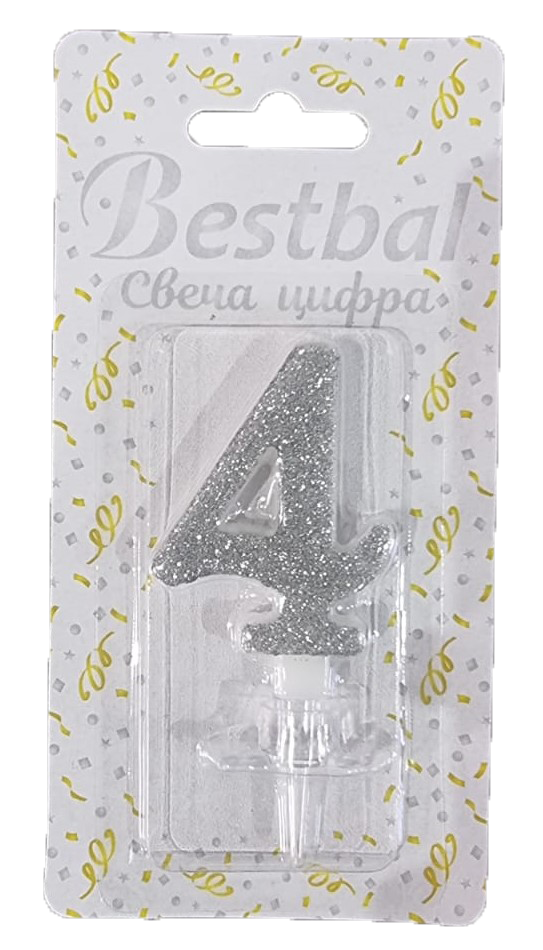 Свеча цифра "4" глиттер серебро Silver